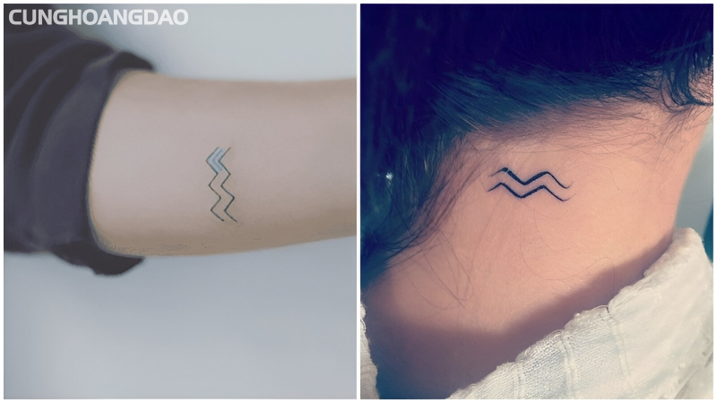 Ký hiệu của Bảo Bình là hai đường lượn sóng song song (♒), tượng trưng cho dòng chảy của nước và ý tưởng. Đây là lựa chọn tối giản và thanh lịch, hoàn hảo cho những vị trí nhỏ như cổ tay, mắt cá chân hoặc sau tai.